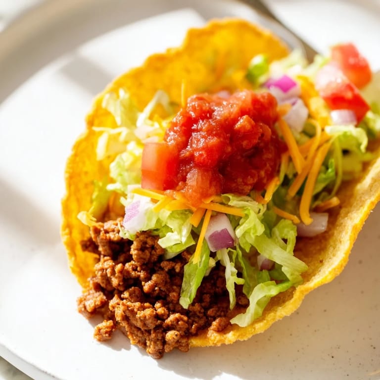The best part of taco night is letting everyone build their own. Set out your warm shells, the seasoned beef in a warm bowl, and all your toppings in small dishes—lettuce, tomato, onion, cheese, salsa. People get creative, they experiment, and nobody's left waiting while you plate things. It becomes less about eating and more about gathering, and that's worth the few extra minutes of prep.