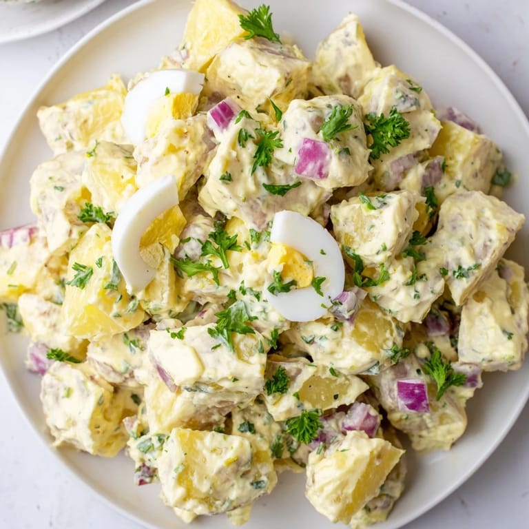 Save There's something about potato salad that stops conversations at summer gatherings. I learned to make it one July afternoon when my neighbor leaned over the fence with her famous version, and I watched her hands move through the ritual—boiling, cooling, folding—like she was telling a story. She never measured anything, just tasted and adjusted, and that's when I realized potato salad isn't about following rules. It's about that moment when warm potatoes meet cool dressing and everything comes together with a gentle fold.