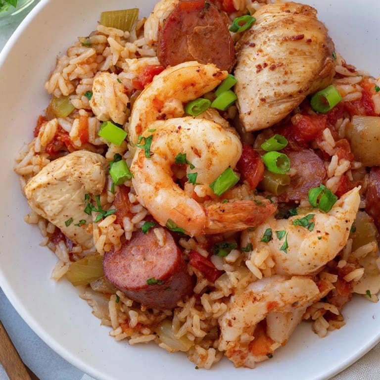 Save My first jambalaya came together almost by accident on a humid July evening when I had too many proteins in my fridge and not enough time to cook them separately. I threw it all into one pot with some rice and spices, and three decades later, I still make it that exact way. There's something about watching sausage and shrimp and chicken come together in one bubbling pot that feels like alchemy, each ingredient surrendering its flavor to create something far greater than any of them could be alone.