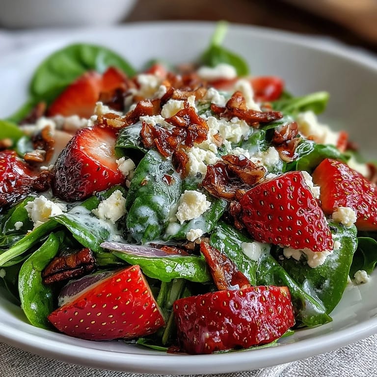 This Fresh Strawberry Spinach Salad shines as a light lunch on its own or as an elegant side dish alongside grilled meats, seafood, or vegetarian mains. Serve it chilled for maximum freshness, especially on warm days. It pairs beautifully with crusty bread, garlic breadsticks, or a bowl of creamy soup for a complete meal. For brunch gatherings, present it alongside quiche, frittata, or breakfast sandwiches. The vibrant colors and fresh flavors also make it an ideal choice for spring and summer celebrations, picnics, and potlucks. Consider serving the dressing on the side if you're preparing the salad in advance or feeding a crowd, allowing guests to dress their own portions to their preference.