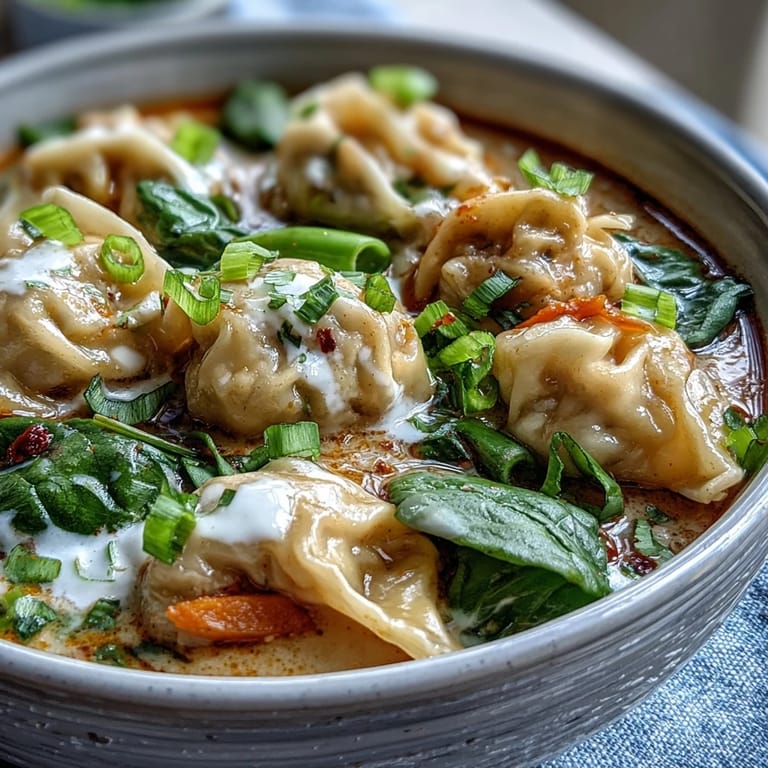 Save The first time I made red curry wonton soup was during a particularly rainy March when I needed something that felt like a warm hug but only had 25 minutes to make it happen. I had a bag of frozen wontons staring at me from the freezer and a jar of red curry paste I'd bought on impulse months earlier. The way the coconut milk transformed that sharp curry paste into something velvety and golden was absolutely mesmerizing. Now whenever grey weather rolls in, this soup is my automatic response.