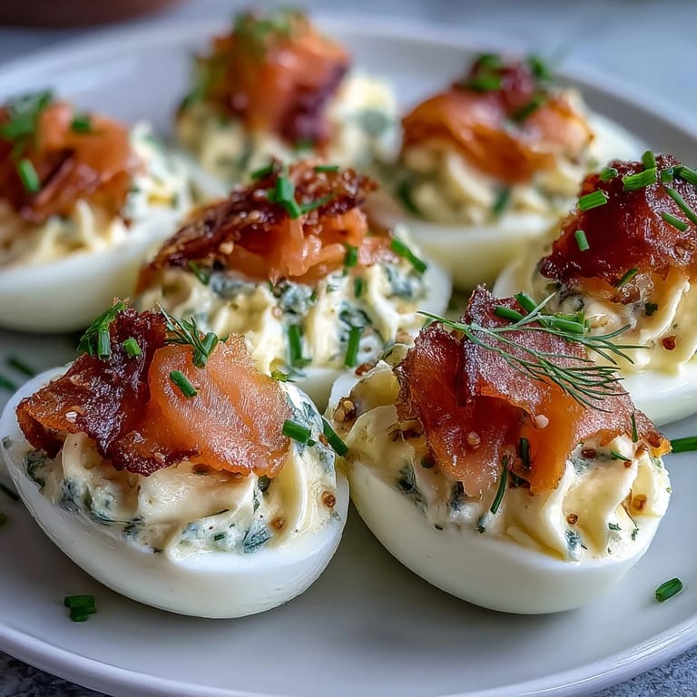 Save There was something about the gentle swirl of steam rising from bubbling eggs that always made my kitchen feel alive. One spring Sunday, as sunlight filtered through our small window, I found myself craving something playful for brunch. I reached for smoked salmon, leftover from yesterday’s lox platter, and realized it was the spark these deviled eggs needed. Pairing them with everything bagel seasoning felt almost rebellious, but I wanted flavors that surprised. The first bite made me laugh with delight—it was everything breakfast could be, in one perfect snack.